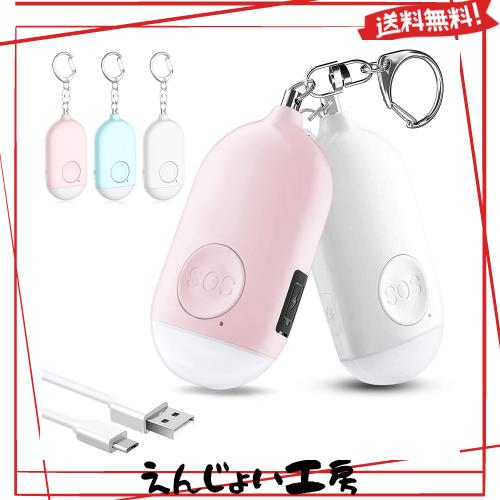 防犯ブザー【2個セット ピンク+ホワイト】 LEDライト付き 防犯アラーム USB充電式 大音量130dB 防水 防犯 ブザー 小学生 女の子 男の子