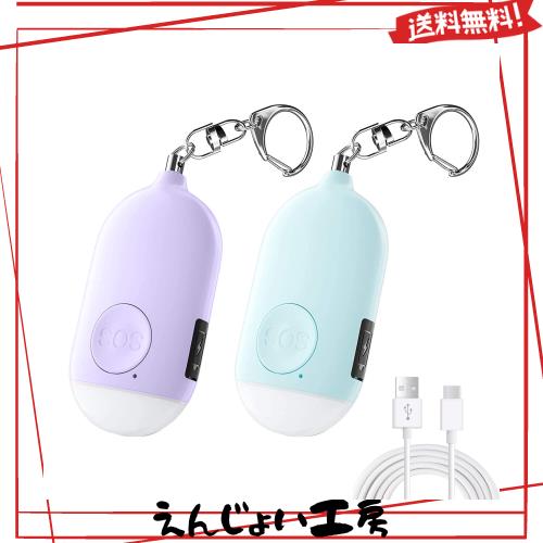 防犯ブザー【2個セット 紫+青】 LEDライト付き 防犯アラーム USB充電式 大音量130dB 防水 防犯 ブザー 小学生 女の子 男の子 女性 大人