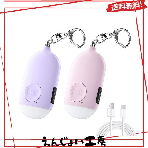 防犯ブザー【2個セット 紫+ピンク】 LEDライト付き 防犯アラーム USB充電式 大音量130dB 防水 防犯 ブザー 小学生 女の子 男の子 女性