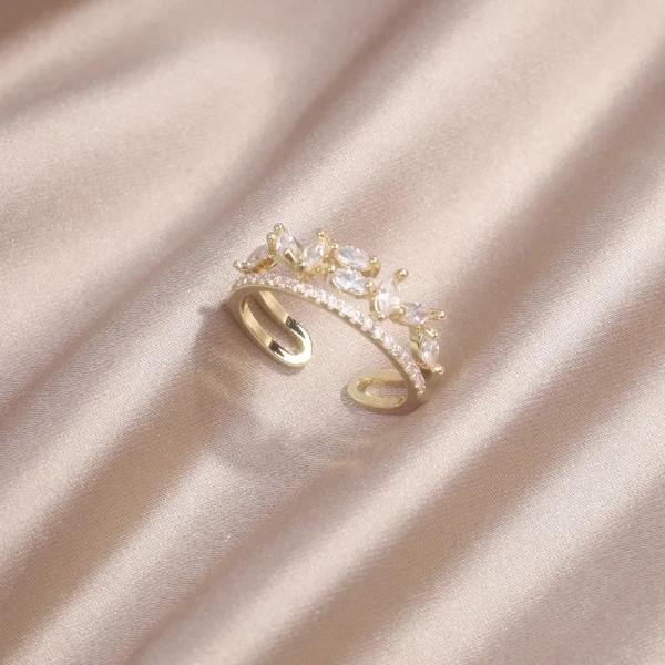 女性のための二重ジルコンリーフリング 電気メッキジュエリー 本物の金 エレガント 日常の作業アクセサリー 韓国語 新しいデザイン ファッション