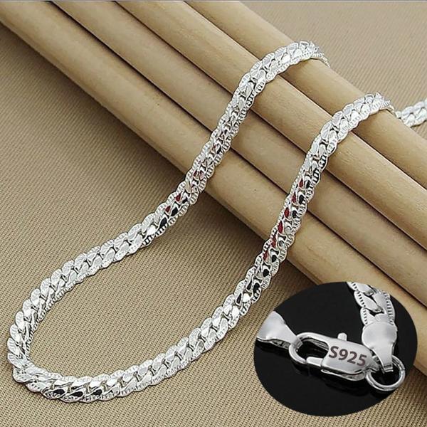 スターリングシルバーネックレスブレスレット,6mm,女性 男性 側面チェーン,ファッショナブル ジュエリーセット ウェディングギフト