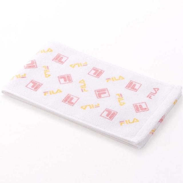 FILAのロゴとマークがタオル全体に散りばめられたポップなデザイン。