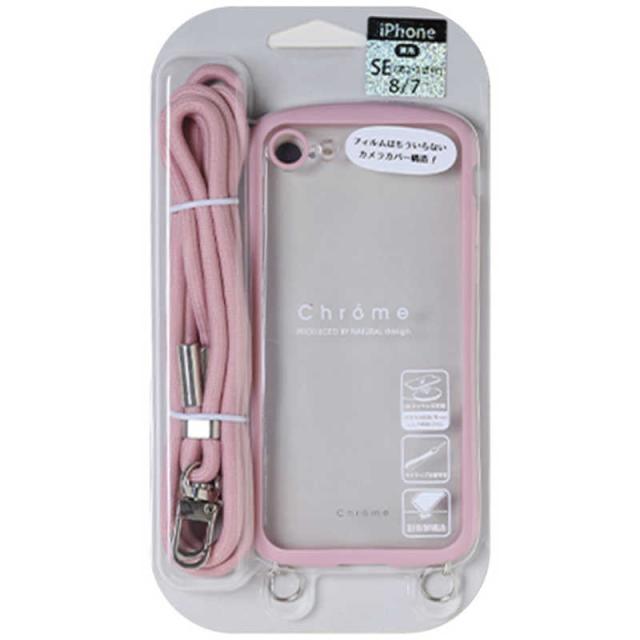 ナチュラルデザイン iPhone SE 第3世代/第2世代/8/7専用 透明クリア&シリコン塗装マットラバー加工 ショルダーストラップセット ピンクグレー IP7CHCS06