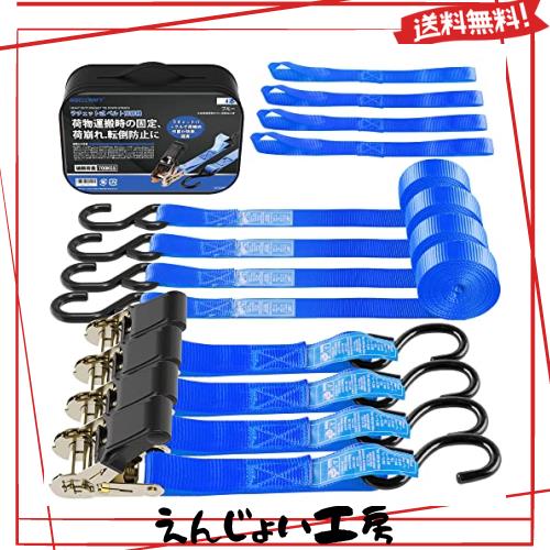 AWELCRAFT ラチェット式タイダウンベルト 破断荷重700kg GS認証取得済み 4本セット 長さ2M 荷締めベルト 幅25mm ラッシングベルト 荷締