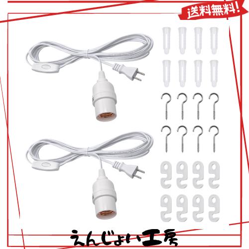 DiCUNO コード付きソケット E26 電球ソケット コンセント 吊り下げスイッチ付き 4m ホワイト オシャレ 2個セット