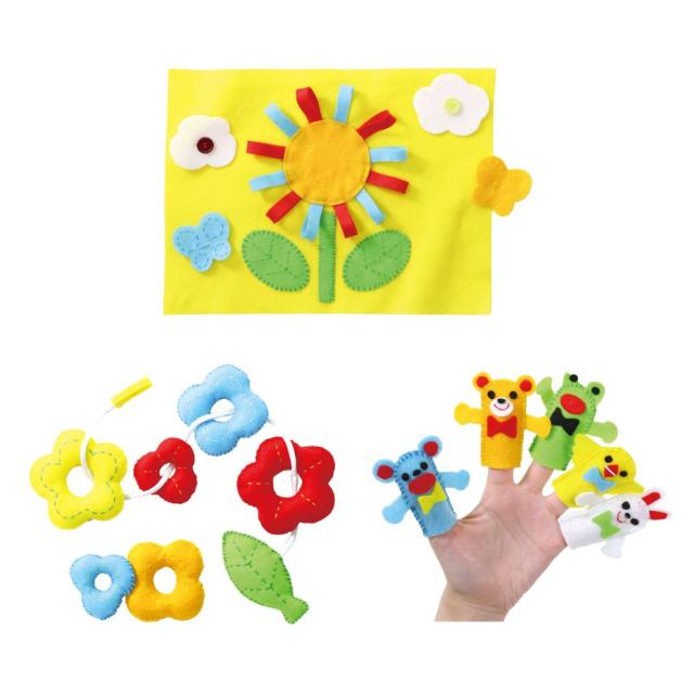 フェルトで作ったかわいいおもちゃで紐通しや指人形をしよう