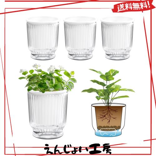 T4U 12CM 給水プランター 植木鉢 プラスチック 4個セット 観葉植物 鉢 おしゃれ 底面給水鉢 給水紐付き 室外 室内 鉢植え ハーブ 花栽培
