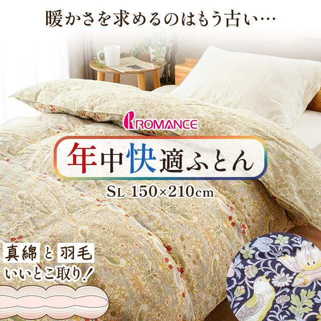 [ keyword | ロマンス小杉 真綿(シルク)入り羽毛掛け布団 しあわせふとん クロスオーバー フランス ダウン 90% シングル 日本製 国産 羽毛 150×210cm シングルロング 高気密住宅 完全立体キルト 特殊キルト 年中 オールシーズン ]