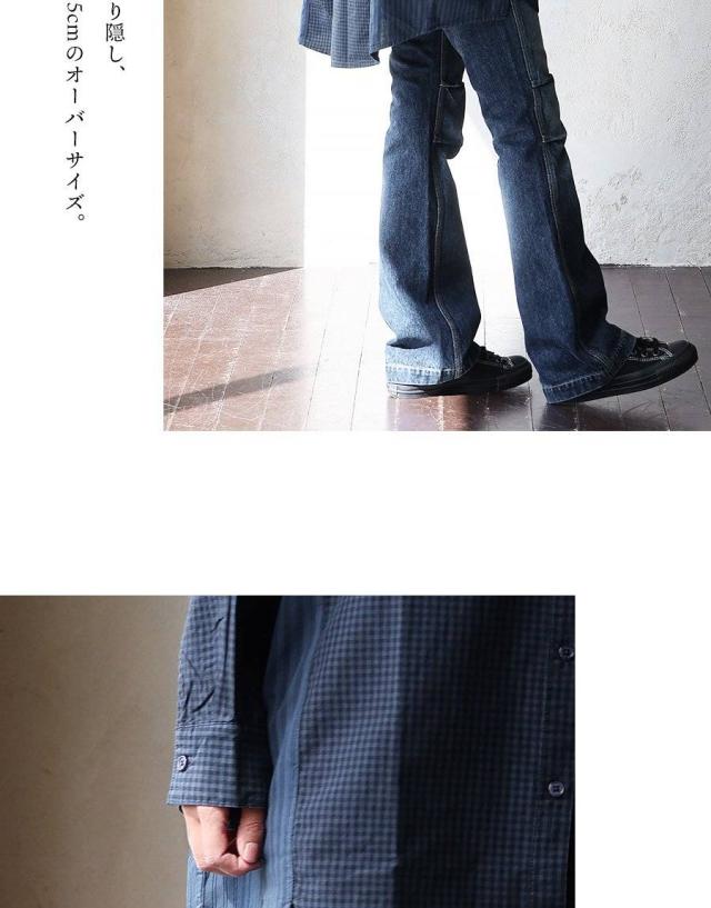 ・ラインを拾わず、お尻をすっぽり隠して着痩せする、身幅約145cmのオーバーシャツ。