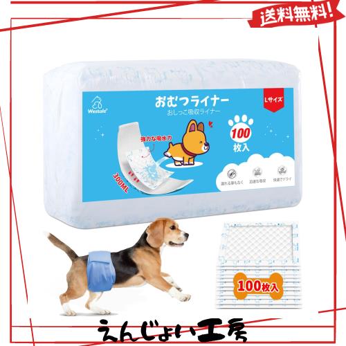 犬 おむつ 100枚入 超吸収 犬用おむつライナー 100%漏れ防止 男の子のマナーベルトパッド Lサイズ ペット用おしっこ吸収シート