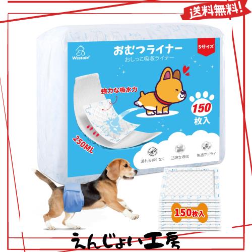 犬 おむつ 150枚入 超吸収 犬用おむつライナー 100%漏れ防止 男の子のマナーベルトパッド Sサイズ ペット用おしっこ吸収シート
