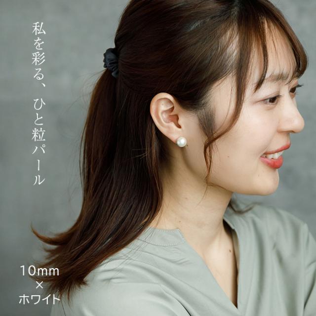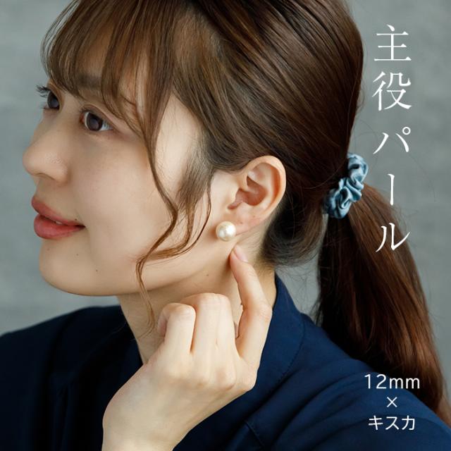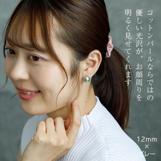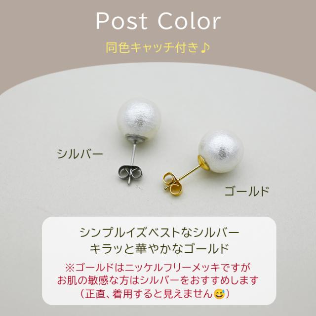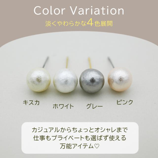 ピアス 一粒 コットンパール 真珠 シンプル 金属アレルギー対応 ステンレス 8mm 10mm 12mm ホワイト ピンク グレー キスカ 大ぶり