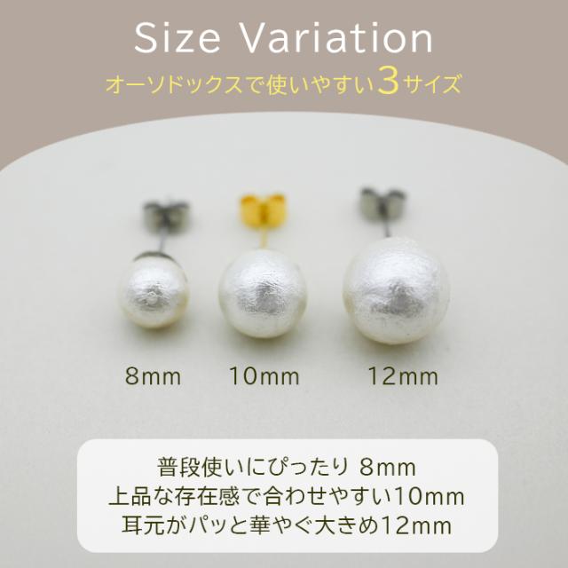 | パール:約8mm、10mm、12mm ポスト:太さ 約0.8mm 長さ 約10mm |