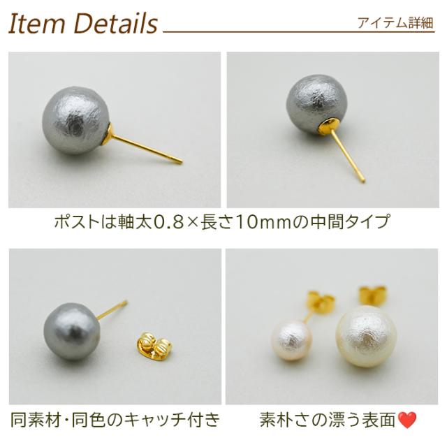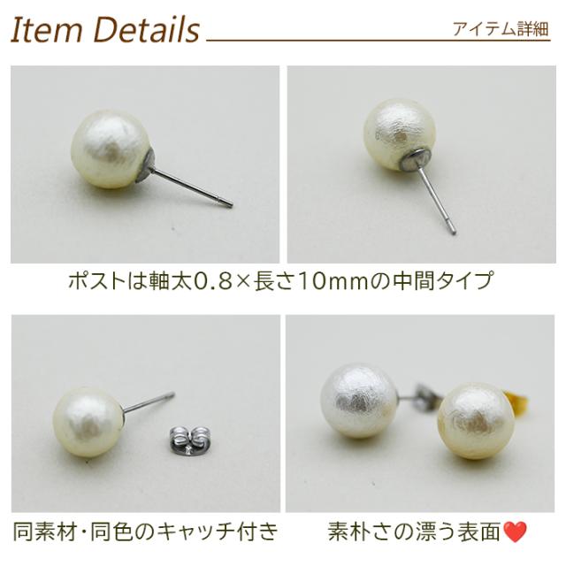 | コットンパールピアス 一粒 金属アレルギー対応ステンレス製 スタッド |