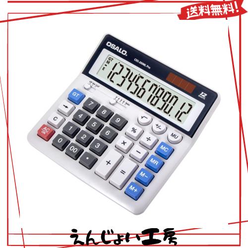 卓上電卓 12桁大型液晶計算機 大きい文字 大きいボタン おしゃ れソーラーでんたく (OS-200ML PRO)
