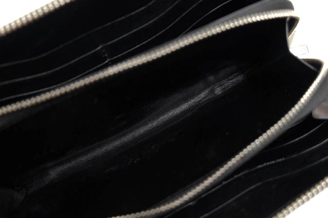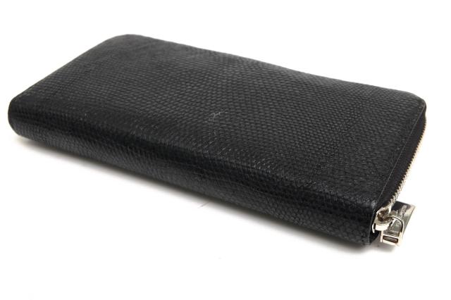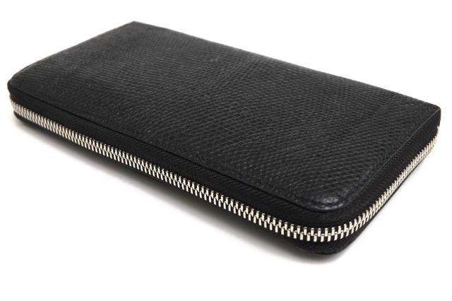 エキゾチックレザーの代表格であるリザード(トカゲ)の革を使用したベーシックな二つ折り財布。日本で鞣したリングトカゲの背割の部分の革を使用しており、「薄く、軽く、丈夫」という特徴を持ち、独特の体鱗の形状と上品なツヤ感が魅力です。内装にはマットな質感の牛革が使われ、上品な印象に仕上がっています。三辺をファスナーで囲んだラウンドファスナー型なので、お札やカードポケット、小銭入れの収納スペースが充実しており、ファスナーを開いたときに視認性に優れているのも特徴です。またファスナーで守られているので、大切なお金やカード類を落としてしまうのを防止し、安全性の高いデザインです。
