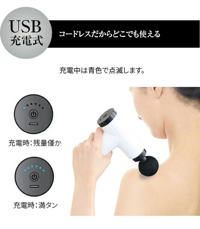 ●仕様/4種のヘッド付、USB充電式、バッテリー容量:1200mAh、電源入力:DC5V/2A、OFFタイマー:15分、充電時間:約3.5時間、連続動作時間:約3時間(振動レベル1[MIN]の場合)
