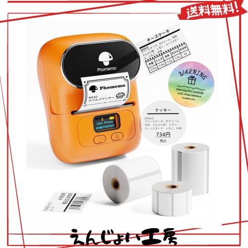 ◆商品名:Phomemo M110 ラベルライター セット スマホ対応 ラベルプリンター 感熱ラベルライター本体+3巻ラベル付き 値札プリンター 業務用プリン