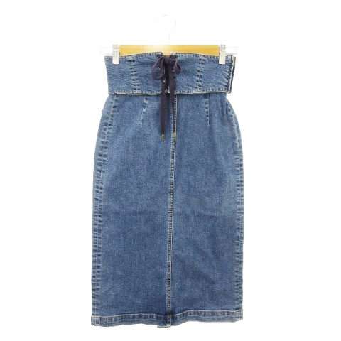 【中古】N.ナチュラルビューティーベーシック スカート デニム タイト ミモレ ロング レースアップ 太ベルト S 青