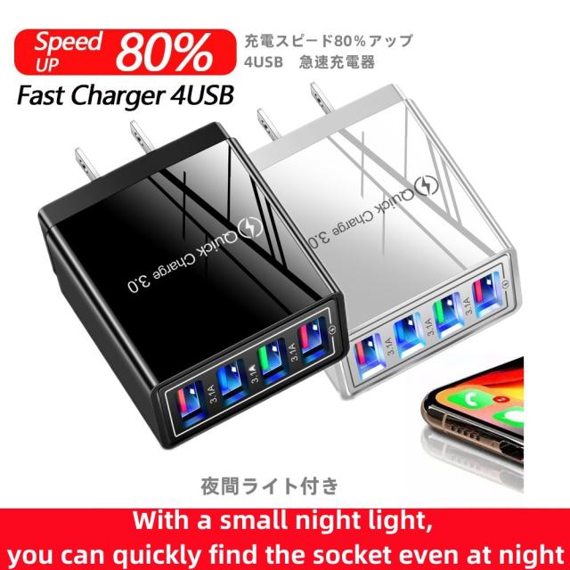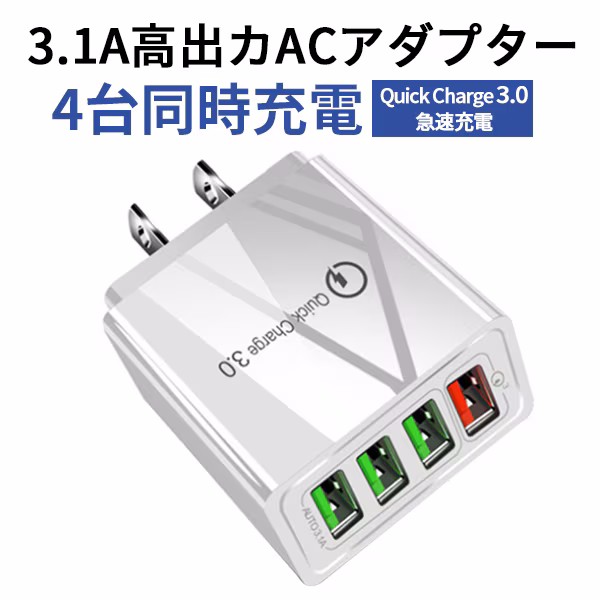 アップルとアンドロイド対応 ACアダプターUSB4台同時充電急速充電器を2個セット(自宅と仕事台2台対応) 最大3.1A出力 iphone充電 電源アダプター 全機種対応 iPhone Android スマホ充電器 携帯充電器 変換アダプター 過充電防止 自動安全電流管理