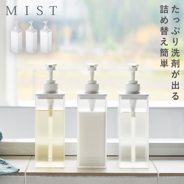 たっぷり洗剤が出るディスペンサー ミスト 山崎実業 おしゃれ ディスペンサー シャンプー ボトル 詰め替え 袋ごと モノトーン ホワイト 1547 1548 1549