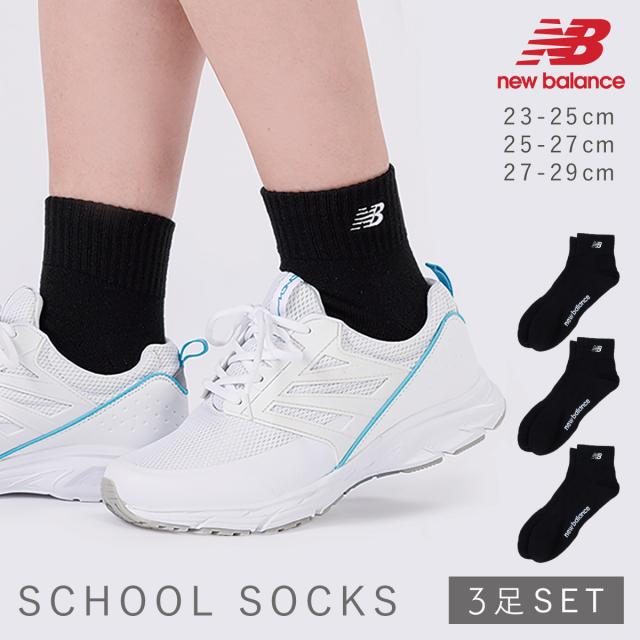 ニューバランス New Balance 靴下 メンズ レディース キッズ 3足組 23-25cm 25-27cm 27-29cm ブランド スポーツ ニューバランス ブラック刺繍ソックス
