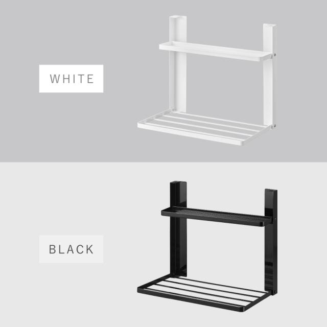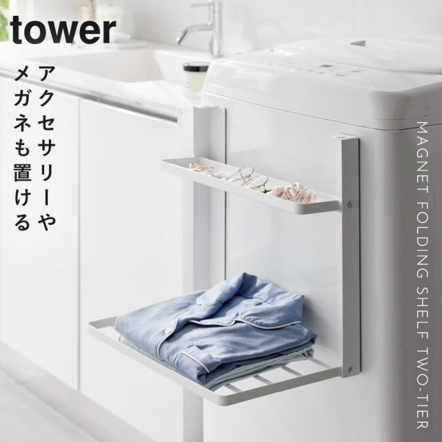 洗濯機横マグネット折り畳み棚2段 タワー 山崎実業 tower タオルラック 折り畳み マグネット スリム おしゃれ モノトーン ホワイト ブラック 1717 1718