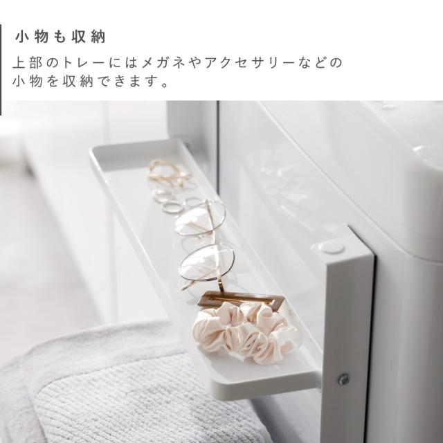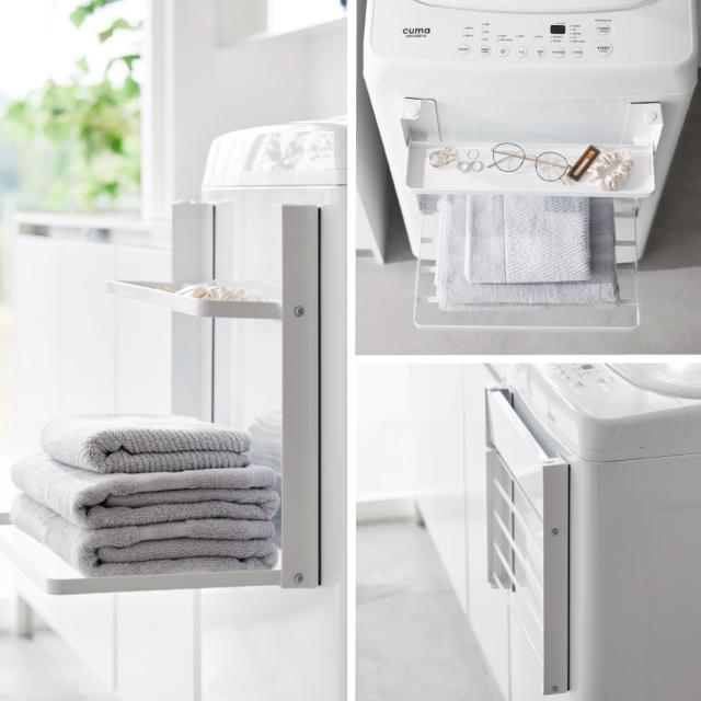 マグネットで洗濯機の正面や側面に簡単取り付け!棚には、お風呂上がりの着替えやバスタオルの一時置きに。