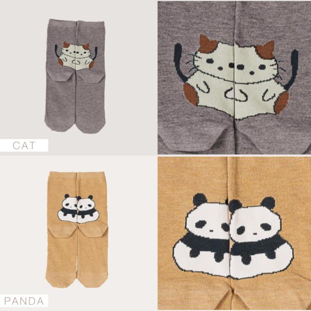 靴下 レディース 4柄組 22-25cm 猫 犬 パンダ クマ 動物 アニマル おしゃれ くっつきアニマルソックス