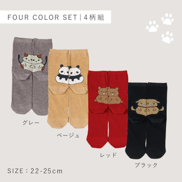 靴下,ソックス,4柄組,セット,まとめ買い,アニマル,動物,猫柄,猫,猫好き,ねこ,ネコ,キャット,犬柄,犬好き,犬,いぬ,イヌ,ドッグ,パンダ,クマ,くま,熊,レディース,女性,女性用,婦人用,婦人靴下,大人,つま先,かかと,丈夫,補強,破れにくい,くつした,くつ下,ソックス,おしゃれ,お洒落,オシャレ,かわいい,可愛い,カジュアル,シンプル,22-25cm,22cm,22センチ,23cm,23センチ,24cm,24センチ,25cm,25センチ,ブラック,黒,グレー,ベージュ,レッド,赤,