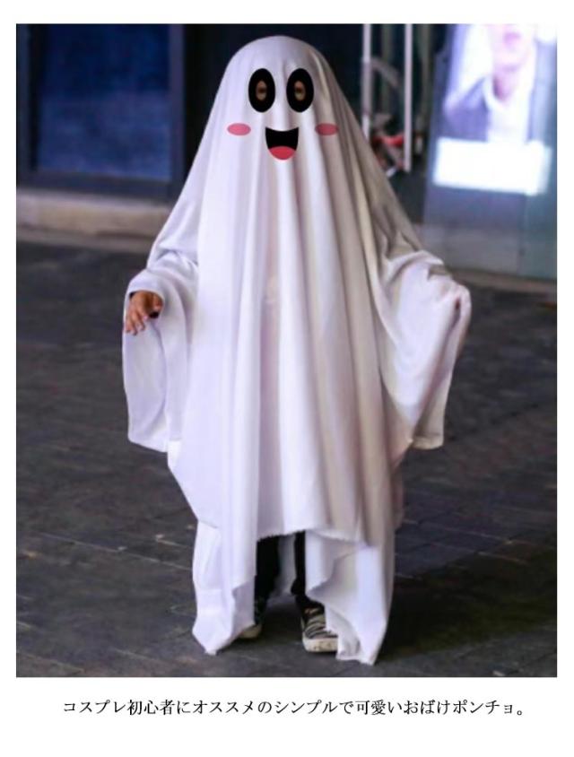 | 被るだけ!シンプルで可愛らしいおばけに。 コスプレ初心者にオススメのシンプルで可愛いおばけポンチョ。 キッズサイズから大人サイズ展開、親子ペアやお友達と合わせると、可愛さ倍増。 脇は縫われているので袖のように手を通せます。 お客様の顔にぴったりフィットするように、目の部分はあえてカットしていない仕様です。届いてから、ご自分でカットしてください。 ハロウィーン、クリスマス、仮面舞踏会、イベント、パーティー、仮装、コスプレに最適です。 | |