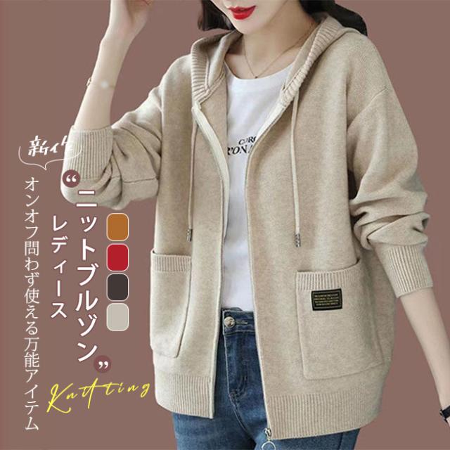 新作 カーディガン レディース ニットカーディガン ジップアップ ニット ブルゾン レディース 春アウター 秋服 フード付き ニットカーディガン ニット ジャケット パーカー トップス 秋冬