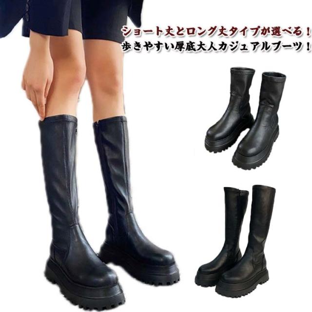 ショートブーツ ロングブーツ 2タイプ丈 レディース 靴 厚底 ブーツ サイドジッパーブーツ ニーハイブーツ 膝下丈 美脚 長靴 ストレッチ シューズ 歩きやすい 厚底 秋冬 おしゃれ 美脚 可愛い カジュアル 防寒 暖かい ソックスブーツ