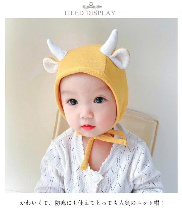 アニマルフードのニット帽耳付き ベビー用 3-12ヶ月使用 3タイプ ニット帽 帽子 ぼうし 耳付き こども ベビー 赤ちゃん 女の子 男の子 キャップ 無地 アニマル 韓国子供服