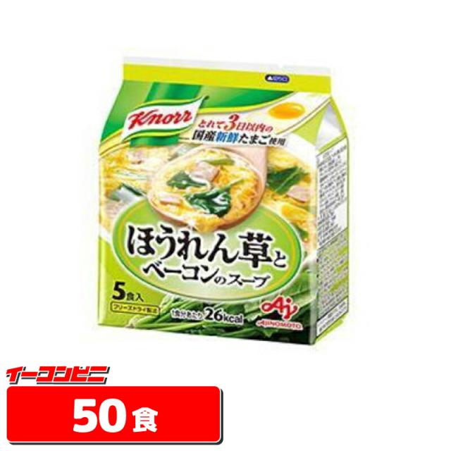指定農場でとれたざく切りのほうれん草とベーコンが入った、具だくさんのたまごスープです。