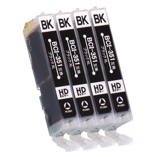 <商品内容> キヤノン 用 BCI-351BK 互換インク 【ブラック4本セット】染料ブラック4本セット。メーカー純正品ではありません。純正品と同様にご使用いただける互換品です。優れた流動性を持つ良質な染料インクを多めに充填しています。※使用後もインクがカートリッジ内に残りますが、カラ打ち防止用の予備分ですので、異常ではありません。