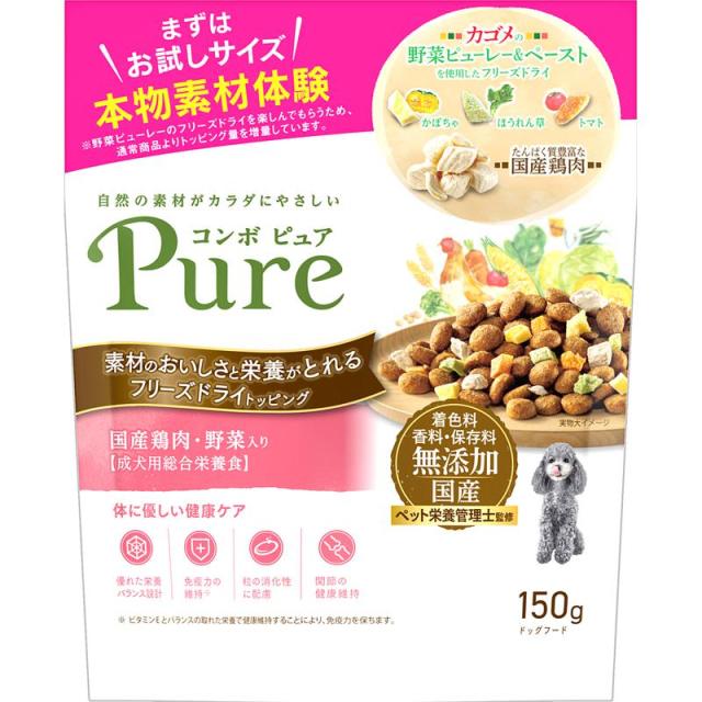 【セット販売】 コンボピュア ドッグ 国産鶏肉 野菜入り 成犬用 総合栄養食 150g 無添加 (×4セット) 日本ペットフード