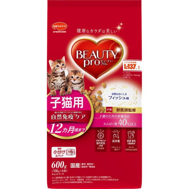 【ケース販売】 ビューティープロ 子猫用 自己免疫ケア 12か月頃まで フィッシュ味 600g (×10セット) 日本ペットフード