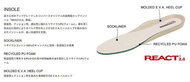 次世代モデルのこのオールスターは、リサイクル素材を使用し快適な履き心地とクラシックな外観を兼ね備えたデザイン性を実現。オールスターと90年代のトレーニングシューズをモチーフにしたボリュームのある厚底ソールを合体し、流線的でレトロスポーティな印象に仕上げたニューモデル。アッパーにラバーの仮底を付けない設計を採用することでボリュームのあるデザインながら軽量化を実現。ミッドソールにクッション性に優れるインジェクションE.V.A.を採用することで履き心地も向上。
