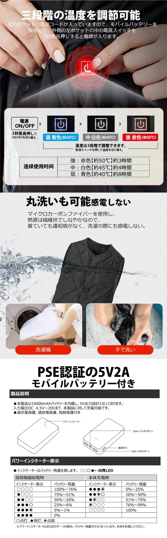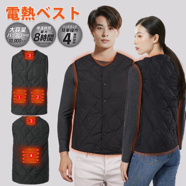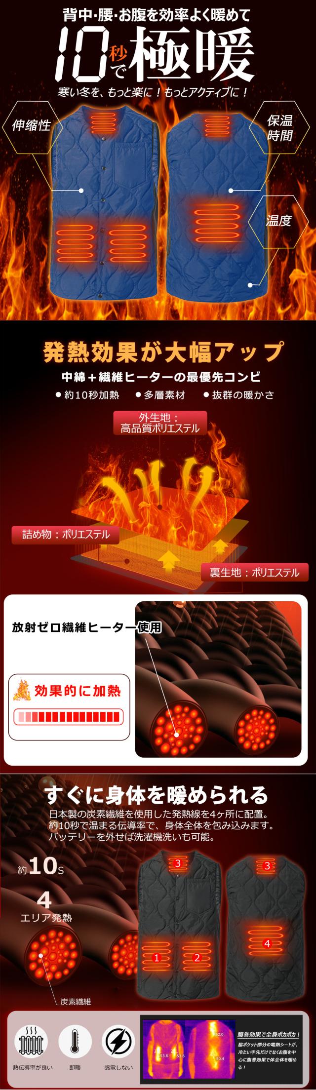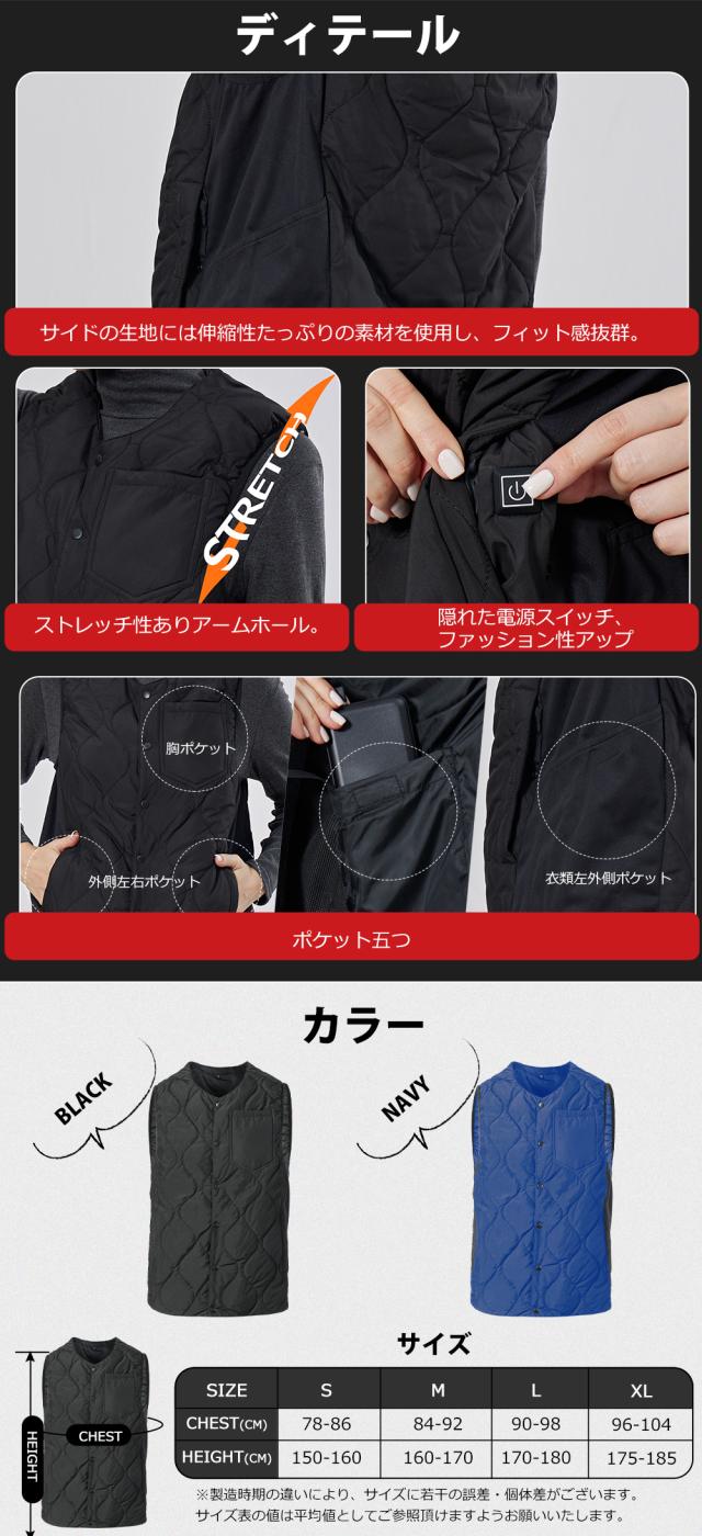 電熱ベスト ヒーターベスト10000mAhバッテリー付き 電熱ジャケット 発熱ベスト 男女兼用 PSE認証済 作業服 レディース メンズ 黒 ネイビー