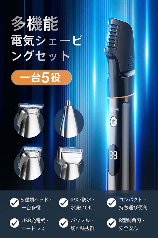 5種類のヘッドを交換するだけで全身のムダ毛を処理できる多機能シェーバー!