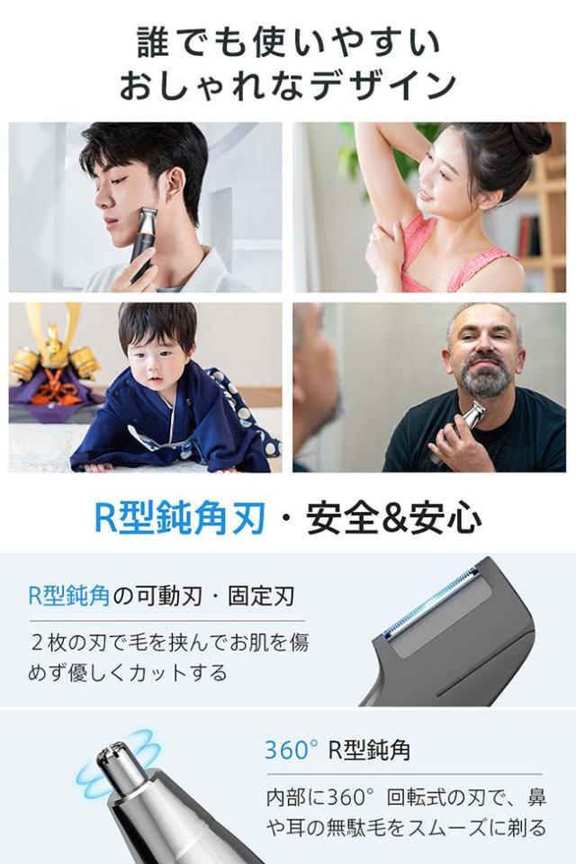 髪の毛、鼻毛、髭剃り、もみあげ、腕、足、脇、VIOまで1台あればムダ毛の悩みはすべて解決!初心者でも簡単に使用可能。髪を切りに行くのは面倒、出費が痛いという方にもオススメです。