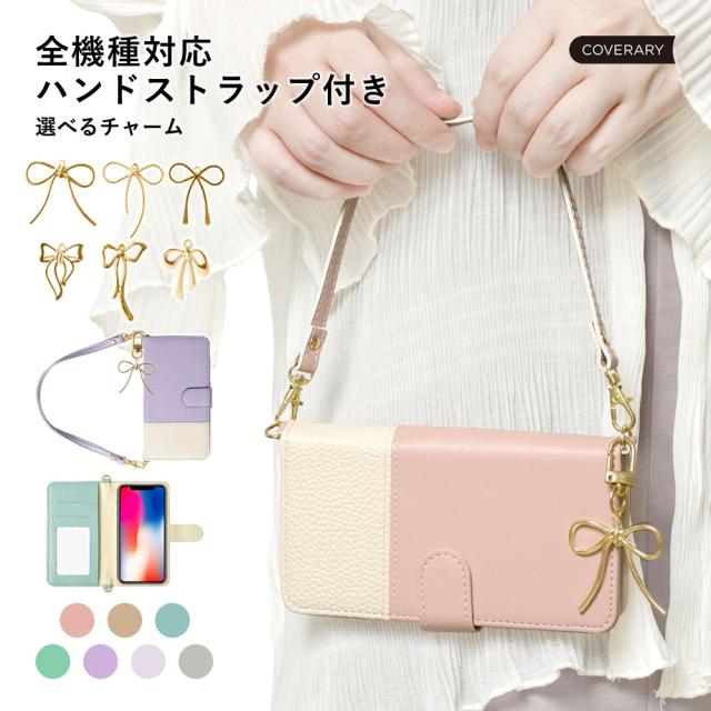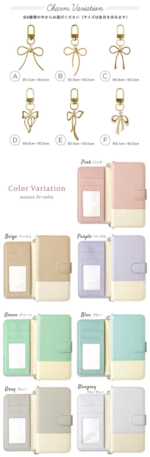 どんなファッションにも合わせやすいニュアンスカラーの手帳型スマホケースが全7色!×リボンチャーム全6種