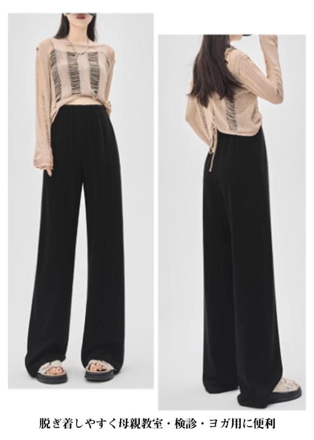 | 産前産後対応可能マタニティワイドパンツ 美脚に見えるデザインで妊娠中もおしゃれを楽しむ ウエストの調整ができ、妊娠初期から産後まで使える ストレッチ性に優れた生地を使用し、お腹回りを優しく包む 脱ぎ着しやすく母親教室・検診・ヨガ用に便利 | |