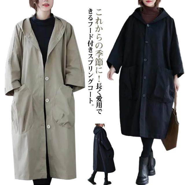 春秋 秋 スプリングコート 秋 春コート 薄手 トレンチコート スプリングコート ロングコート ライトアウター トレンチ コート ロング きれいめ ゆったり アウター 冬 モッズコート 羽織り ブルゾン 体型カバー カジュアル 大きいサイズ 長袖 エレガント おしゃれ