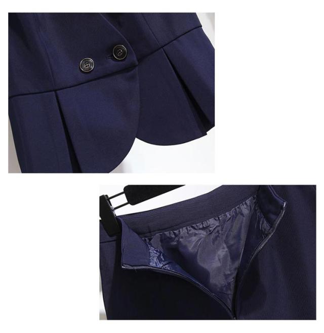 | 【顔周りすっきり!深Vペプラムベスト+タイトスカート+リボン襟シャツ】 着?せ効果抜群のオフィススーツ3点セット。 お家で洗えるのがうれしい。 制服、事務服として大活躍。 | |