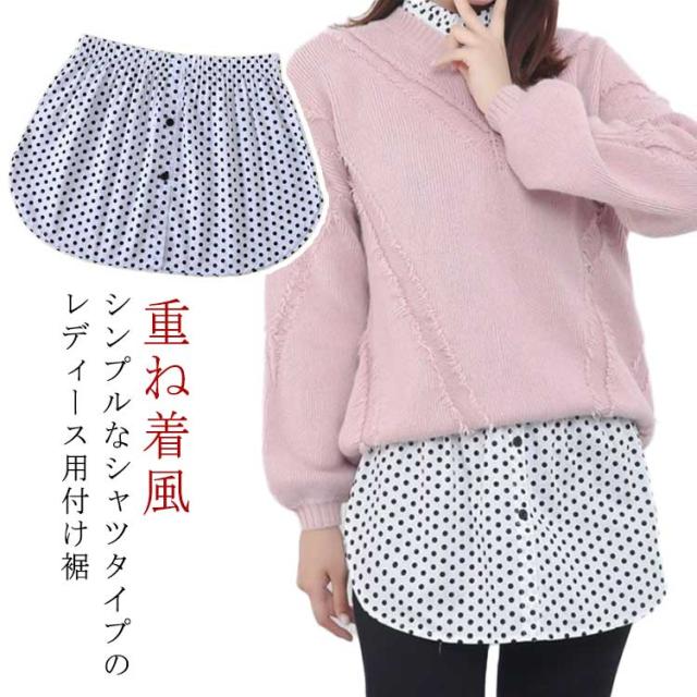 体型カバー つけ裾 フェイクレイヤードシャツ 重ね着風 付け裾 付け裾 シャツ 無地 ウエストゴム 前ボタン 大きいサイズ おしゃれ かわいい シンプル デイリー カジュアル 女性用
