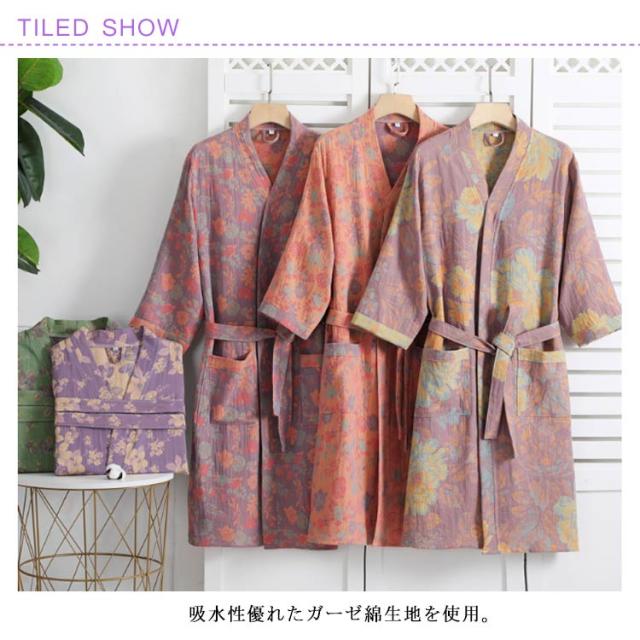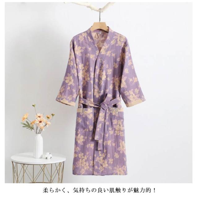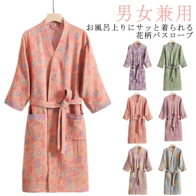 ガーゼ綿 パジャマ 花柄 レディース 花柄 ベルト付き 浴衣式 バスローブ ルームウェア ポケット 吸水 メンズ 男女兼用 お風呂上がり ガウン ナイトガウン ナイトウェア 部屋着 ガウン着 おしゃれ プレゼント M L