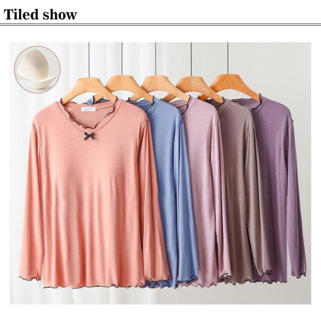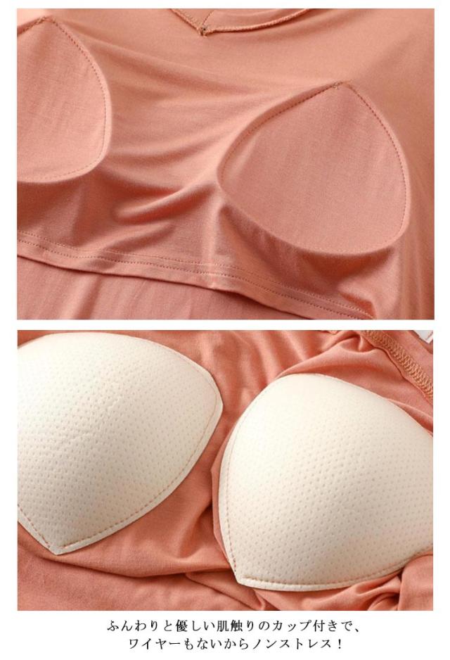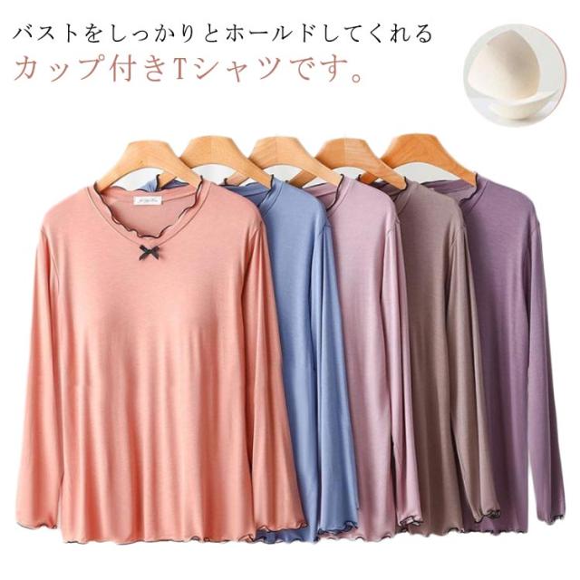 ルームウェア カットソー Tシャツブラ 無地 ロンT 締め付けない インナー カップ付き 長袖 インナー トップス Tシャツとして着れる 秋冬 下着 肌着 インナーシャツ パット付長袖Tシャツ ブラジャー ブラ パッド付き 無地 速乾 締め付けない
