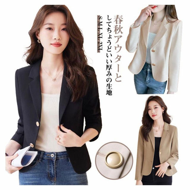 ショート丈 長袖 通勤 ジャケット 40代 夏 レディース 韓国風 キレイめ カジュアルスーツ ブレザー 女子 通学 テーラードジャケット 春秋 スーツ 秋 スーツ生地 学生服 制服 フォーマル 春 ビジネス 20代 テーラードジャケット 30代 50代 ライトアウター アウター お洒落